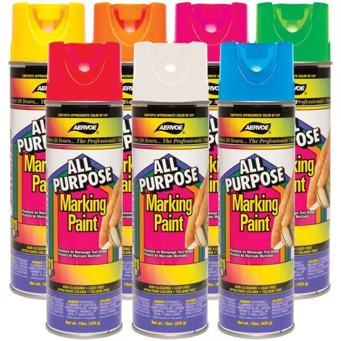Aervoe formulates these paints with the environment, and your health, in mind. They contain zero lead, toluene, or CFCs. Their bright colors meet standards set by OSHA as well as APWA/One Call systems.