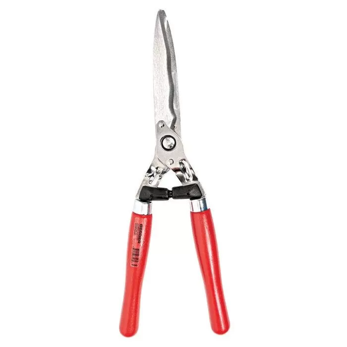 The Berger Wavy Blade Hedge Shear is made with high quality forged steel and chrome-plated wavy blades that make this shear extremely durable and long-lasting. The wavy blades give more surface area and cut extremely efficiently, preventing plant material from slipping down the blades during cut. A sap groove on each blade prevents the blades from sticking for a continual smooth cut action. The blades are self-sharpening and the tension knob can be adjusted quickly and easily. Outfitted with traditional wood handles that give this tool a great feel. Made in Germany. 23-5/8″ overall length, weight 2.2 lb