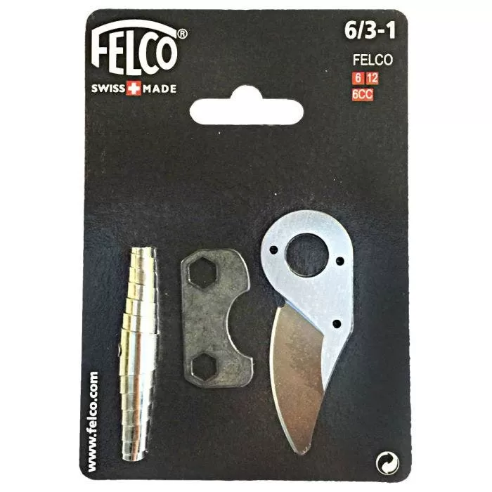 Each set contains one blade, spring and adjustment key for specified tool. This allows for the full replacement of the most common FELCO replaceable parts.