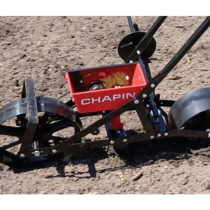The Chapin Garden Seeder accommodates over 20 different seed types, making it highly versatile and efficient. The interchangeable seed plates allow for appropriate seed spacing of up to 30 inches between rows, depending on the seed type. Precise planting depth is also based on the seed type, ensuring successful and healthy growth of your plants.
