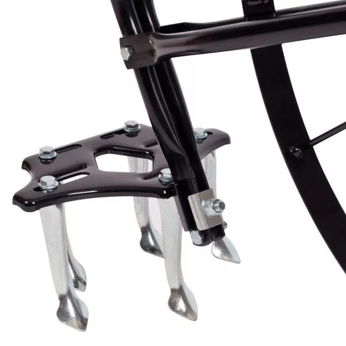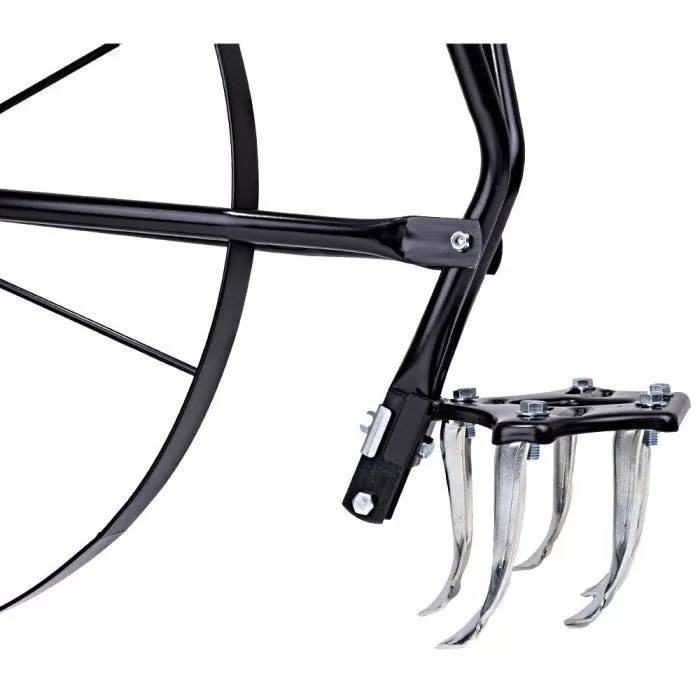 This Kentucky-Style High Wheel Cultivator features a heavy-duty powder-coated tubular steel frame. The tubular steel handles offer three different height adjustments. Earthway outfits this tool with a two-foot diameter steel wheel and a quick-change toolbar. Each cultivator includes three standard tools: a twin-end furrow plow, a moldboard plow, and a five-tine cultivator.