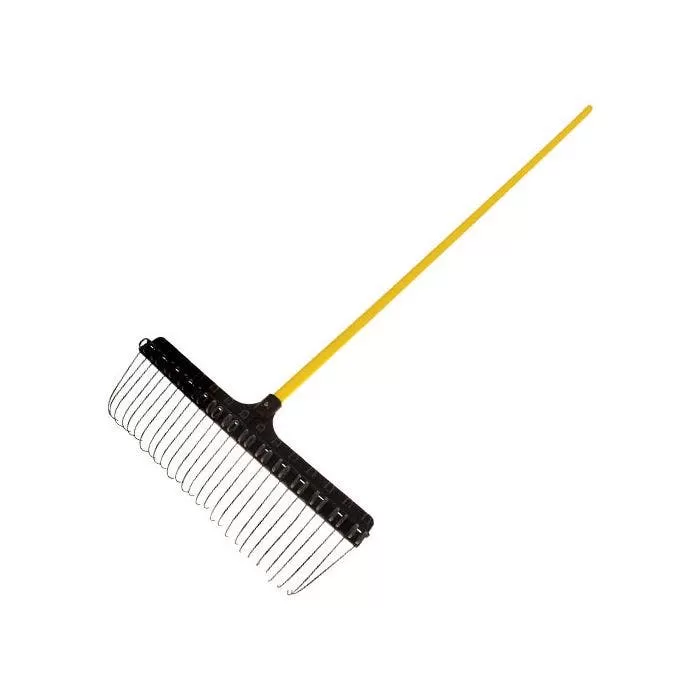 Commonly used for a variety of materials and tasks: raking sticks and leaves, spreading mulch and pine straw, great for de-thatching and soil prep, and tough enough to rake rocks and spread gravel! Available with 9″ and 21″ wide rake heads. Each is equipped with a 55″ fiberglass handle featuring a swivel hang hook for easy storage. Spring tines are replaceable. Made in the USA!