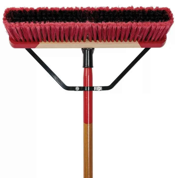 Dual bristle broom tackles a wide variety of chores. The stiffer, center bristles sweep medium debris while the fine, border bristles, take care of the dust and small particles. For indoor or outdoor use under wet or dry conditions. 1 and 1/8″ x 60″ hardwood handle. Solvent resistant 3″ bristles.