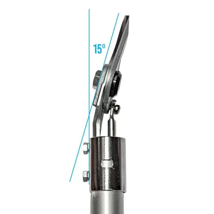 The ARS 7ft Long Reach Pruner has a larger aluminum housing and heavy-duty inner rod that provides strength and rigidity while remaining lightweight at only 2.1lbs. The cutting head is angled at 15 degrees for a more direct connection to the linkage, providing additional cutting power required for tough cuts. The hard chrome plated, high carbon steel angled bypass cutting blades cut clean and hold their edge.