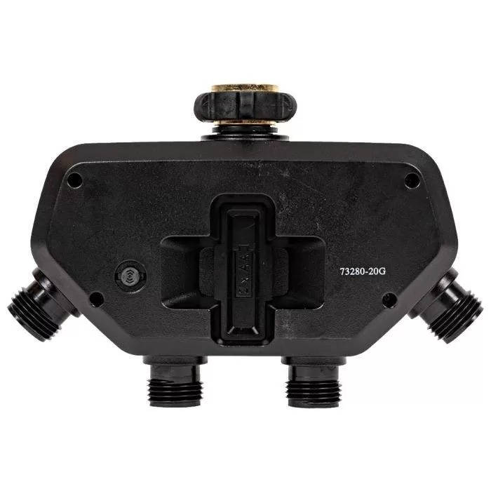 The HydroLogic 4 Zone Water Timer is designed for easy setup and programming. It has a clear display that allows you to keep track of watering cycles in real time. The timer controls 4 zones right out of the package, and each zone can be programmed separately for individual days of the week. The timer also offers manual watering control, up to 24 automatic watering times per day, a large LCD screen, and a metal coupling nut with a rubberized grip. Additionally, it retains programming through battery changes, has a manual rain delay, and comes with a limited 7-year warranty.