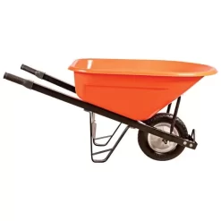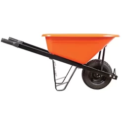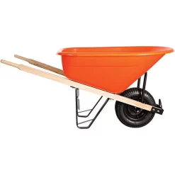 Leonard 6-Cubic-Foot Orange Poly Tray Wheelbarrow With Steel Handles And Pneumatic Tires