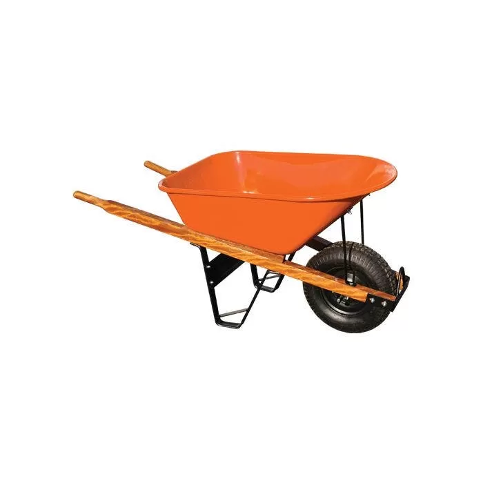 Leonard 6-Cubic-Foot Capacity Steel Tray Wheelbarrows feature a durable orange steel tray. We equip them with extra-thick hardwood handles. These handles measure 1-5/8-inch by 2 inches and are 5 feet in length. Leonard 6-Cubic-Foot Steel Tray Wheelbarrows feature a welded tray support, wide carriage bolt heads, and a heavy-duty undercarriage. We also equipped them with upgraded precision ball bearings and a 5/8-inch steel axle. You choose from either pneumatic tires, flat-free tires, or narrow flat-free diamond-tread tires. Our 6-cubic-foot wheelbarrows support up to 500 pounds. The combination of features and low-profile design increases stability. This increased stability allows you to transport even the most substantial loads over uneven surfaces with ease. Leonard Steel Tray Wheelbarrows provide the perfect mix of strength and maneuverability. Their high-quality design and construction make them last a lifetime. We back this up with our lifetime warranty!