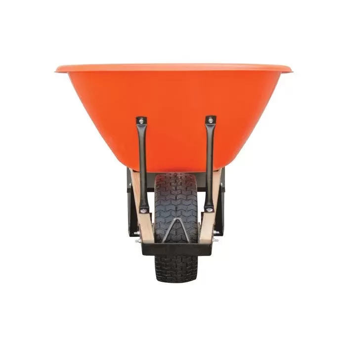 Leonard 8-Cubic-Foot Capacity Poly Tray Wheelbarrows feature a durable orange ABS plastic tray. We equip these wheelbarrows with extra-thick hardwood handles. These handles measure 1-5/8-inch by 2 inches and are 5 feet in length. Leonard 8-Cubic-Foot Poly Tray Wheelbarrows feature a welded tray support, wide carriage bolt heads, and a heavy-duty undercarriage. We also equipped them with upgraded precision ball bearings and a 5/8-inch steel axle. You choose from either pneumatic tires, flat-free tires, or narrow flat-free diamond-tread tires. Our 8-cubic-foot wheelbarrows support up to 500 pounds. The combination of features and low-profile design increases stability. This increased stability allows you to transport even the most substantial loads over uneven surfaces with ease. Leonard Poly Tray Wheelbarrows provide the perfect mix of strength and maneuverability. Their high-quality design and construction make them last a lifetime. We back this up with our lifetime warranty! Due to is dimensions, this product must ship via motor freight. It is not eligible for any free or reduced shipping offers.