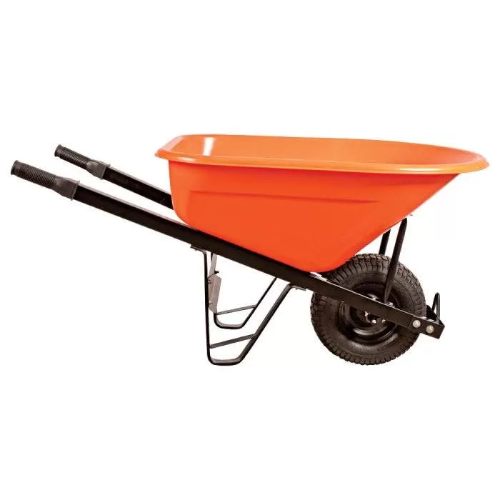 We design our wheelbarrows with you in mind! We loaded these wheelbarrows with features: Design: The low-profile design provides increased stability, even with heavy loads on rutted surfaces. Wide carriage bolt heads and heavy-duty undercarriage offer enough support to handle loads weighing up to 500-pounds. The tough, 8-cubic-foot capacity poly tub provides many years of reliable service! Steel Handles: We equipped this wheelbarrow with our NEW steel handles. We make these handles from 18-gauge galvanized steel tubes. We apply a black powder coat to the outside for added durability.