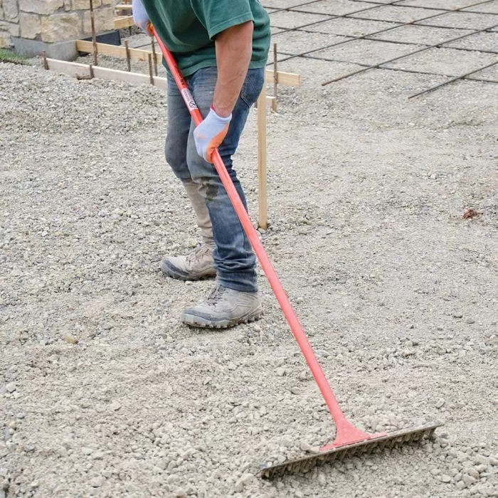Leonard All-Steel Rakes are excellent for grading and leveling. Use the teeth to spread your material and flip the rake over and use the flat side to level it out. Their all-steel construction ensures that they last through even the toughest tasks.