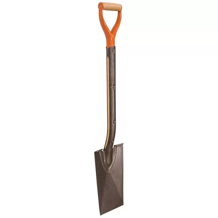 - Plus this classic spade includes these features: a strong, one-piece welded metal D-grip with full-through rivet at grip; single directional rivet holds straps and D-grip, increasing strength; shock-absorbing American Ash handle core; heavy gauge rivets bond metal to wood for unmatched strength; larger turned steps reduce foot fatigue and are compatible with our #AMFP foot pad; blade is beveled to optimum angle to offer sharpness and durability.