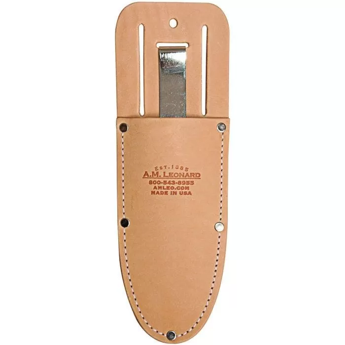 The Leonard Leather Sheath is a protective covering for the 4750 and 4752 Soil Knife while working or storing. It is made of top grain leather, stitched and riveted, and measures 11″ long and 3.75″ wide at the top.