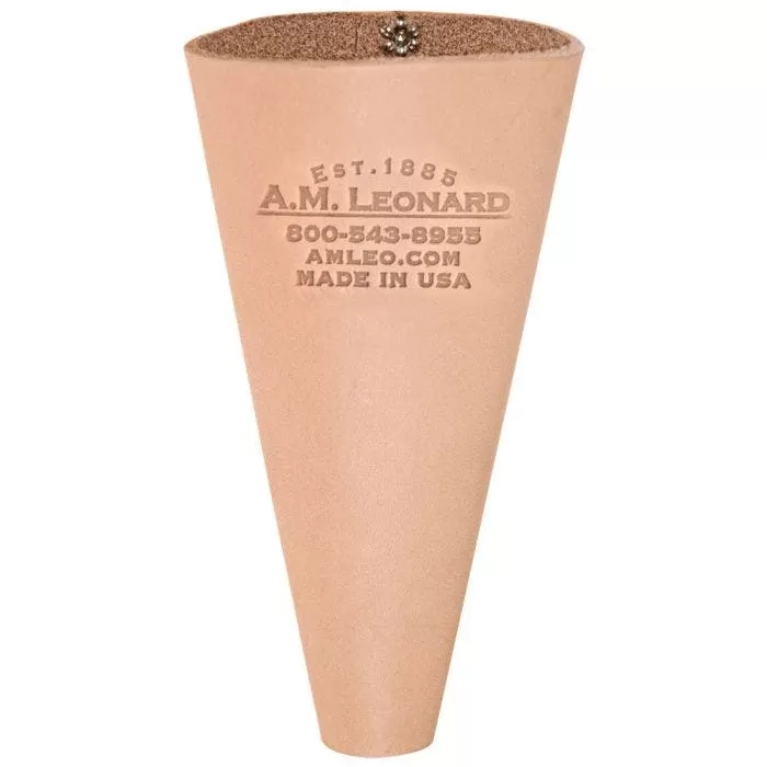 Cone shaped leather case clips quickly to belt or pant waist for convenient access to your pruning shears. Protects during storage. Durable top grain leather.