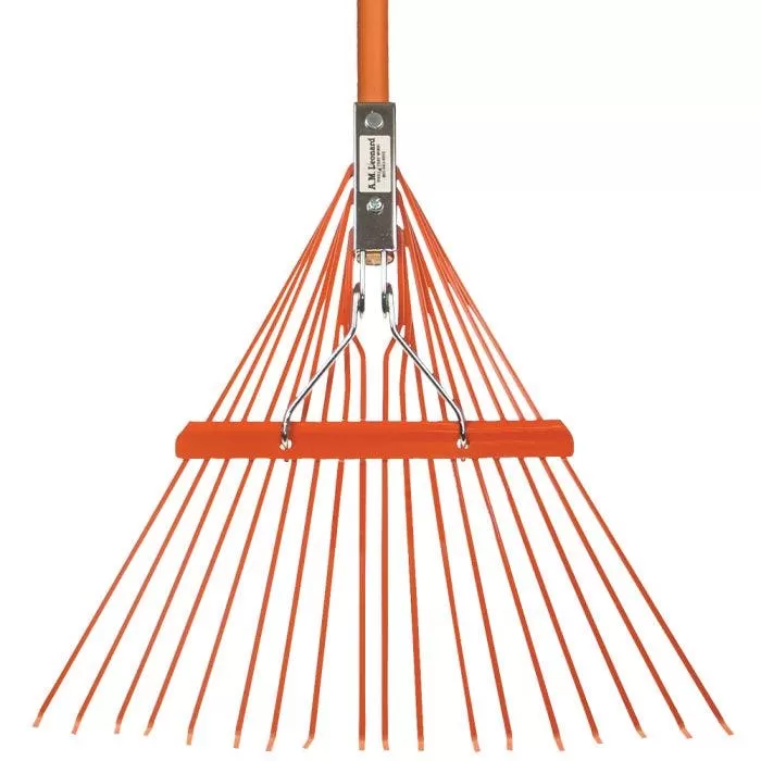 The inverted V shaped tine design of the Leonard Spring Rake increases the overall durability of the head. The reinforced, continuous tine design and additional spring greatly enhance durability. Plus, it allows you to dig into a pile of wet leaves without any damage to the rake.