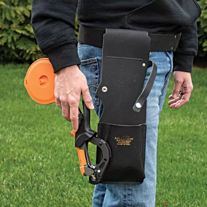 The Leonard Tape Tools Sheath keeps your tape tool conveniently at your side. This sheath fits most brands but works exceptionally well with the Max Tapener Hand-Tying Machine. The bottom pouch and snap strap keep the tool secure yet accessible.