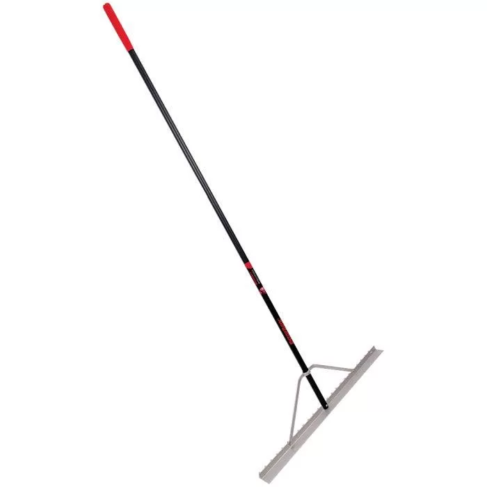 This lute rake is perfect for both professionals and homeowners. It is the ideal design for leveling and grading gravel and asphalt. Use the toothed side to spread your material, then flip the rake over to grade with the flat blade. The extra-long handle provides you with the perfect angle for both spreading and leveling.