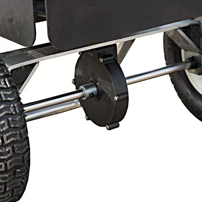 The welded frame is made from powder coated carbon steel. Large 13 inch pneumatic tires to make the job easier. The spreader comes equipped with a fixed rear deflector and three poly deflectors to adjust your spread to meet your needs.