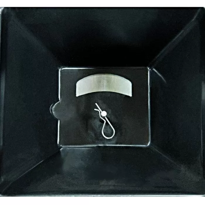 The material flow regulator has a solid linkage to easily control as you go. Comes with a hopper screen and nylon rain cover to keep material dry and moving.