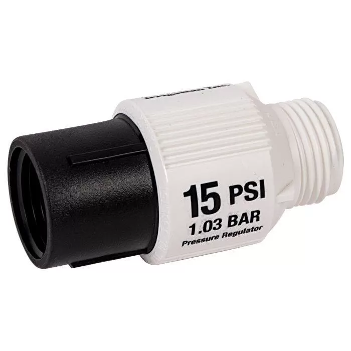These Low Flow regulators control the pressure within your drip irrigation system. They maintain your predetermined operating pressure if the inlet pressure is at least 5 PSI, but not greater than 15 PSI. You can install them above or below ground. Always make sure that the arrow on the regulator points in the direction of the flow. Also, ensure you install pressure regulators downstream from all shut-off valves.