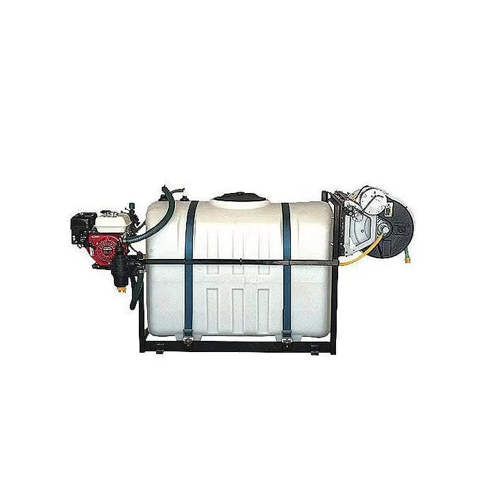 The Skid Sprayer 200gal 560psi is designed for green industry professionals with high-quality Udor diaphragm pumps and reliable Honda engines. It features adjustable pressure and jet agitation, as well as welded steel frames with a black powder coat finish. Furthermore, it includes an electric reel with 300ft hose and Chemlawn Spray Gun, offering convenience and efficiency.