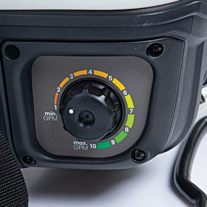 - USER-CONTROLLED VARIABLE FLOW: from 0.1 – 0.6 GPM ~90PSI MAX; Adjust flow rate for a broad range of applications & uses.; Eliminates over-application of chemicals.; Consistent application rate increases efficiency on the job!