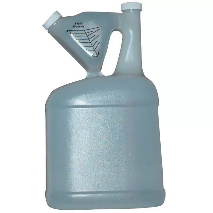 Now you can store and measure your chemicals in one container. Tip-N-Measure containers make measuring the correct amount of chemicals you need safe and easy. To use just fill the jug with the desired chemical, and tip to fill the measuring area to the correct quantity and pour. There is no need to use a separate measuring cup, helping to prevent spillage.
