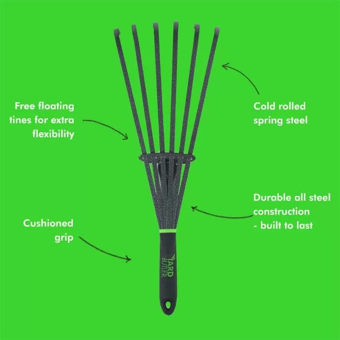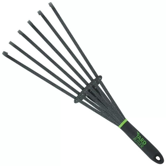 The Whisk Rake is the perfect size for getting into hard-to-reach spaces. It is ideal for cleaning around shrubs, flowers, and rose bushes. The springy tines pull up leaves, twigs, and other small debris.