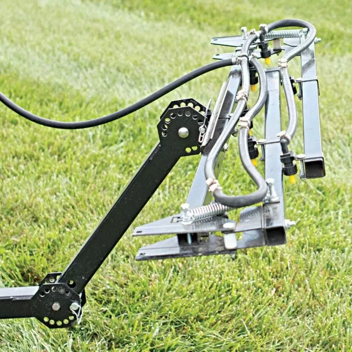 Green Leaf designed their WorkHorse Hitch Mount Boom to fit any 2-inch receiver hitch. Easily connect it to any WorkHorse sprayer with a 25-gallon or larger tank. This process requires no additional adapters or fittings! Use the index pins to set this boom to any desired height or angle. The spring loading on the sides folds back in case of accidental collisions. You can also manually fold it for storage. Green Leaf equipped this boom with 7 nozzles. These nozzles include screens with check valves to protect the spray tips and control dripping.